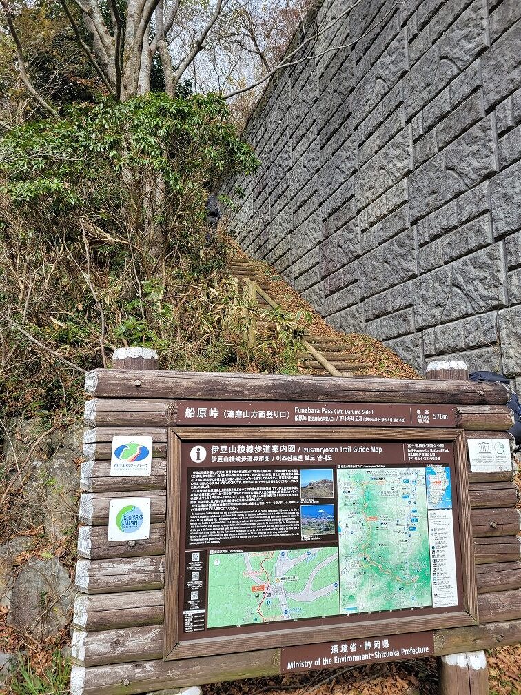 修善寺駅から30分程で大曲茶屋バス停に着きます。ここから車道を30分歩き船原峠に。ここからトレイルが始まります。
