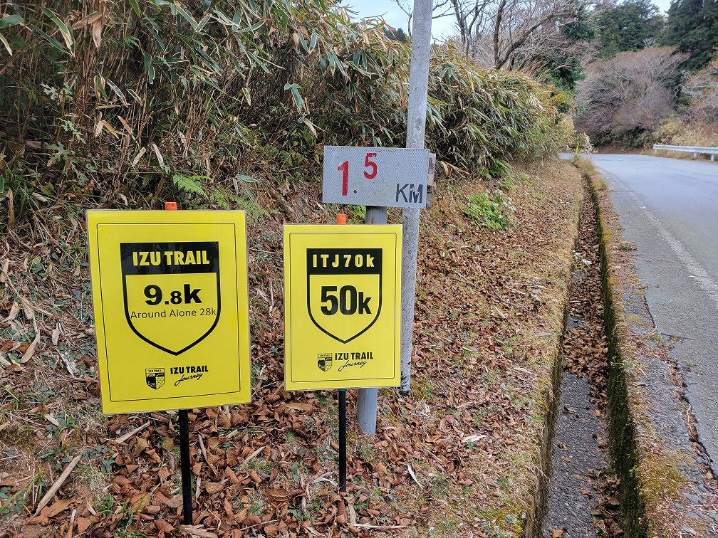 翌日に伊豆トレイルジャーニーというトレランレースがあるため、コースになるところにはマーカーが設置されています。