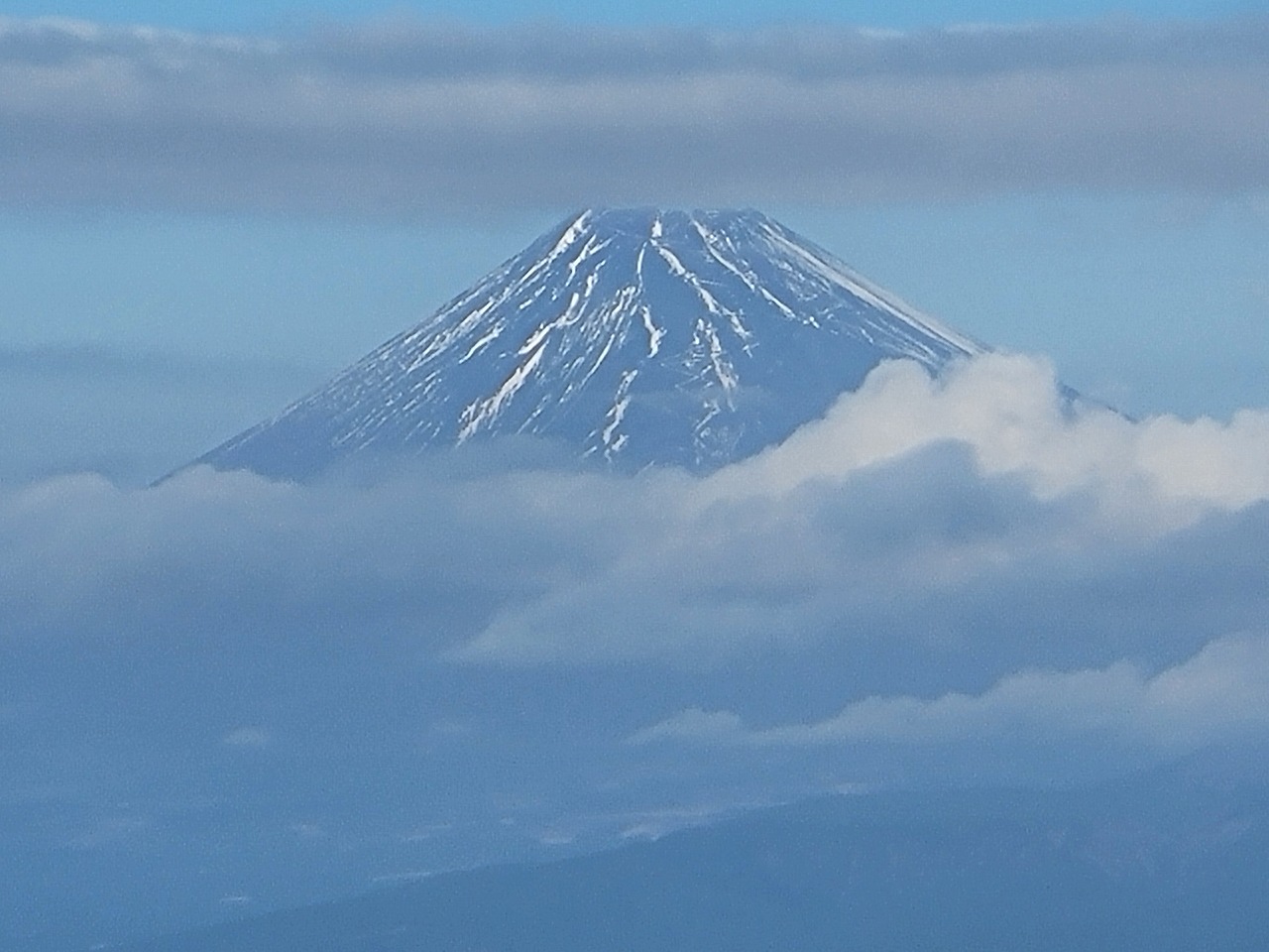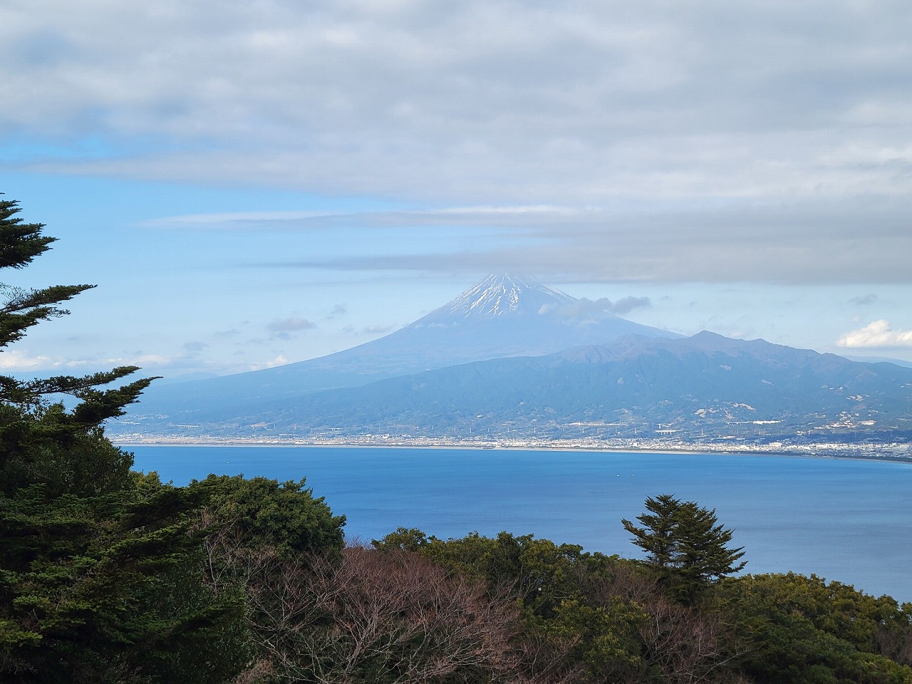眺めを楽しんだ後、達磨山からの下りの途中、先程まで隠れていた富士山が見えて来ました!富士山が見えるとテンションが上ります。