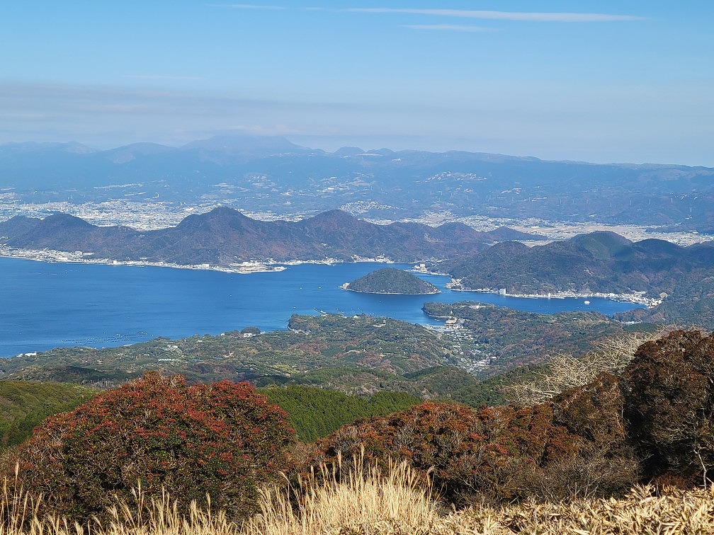 右側の島は淡島、その後ろが沼津アルプス、更に後方は箱根の山々です。