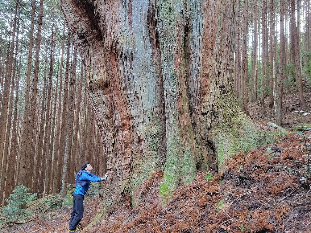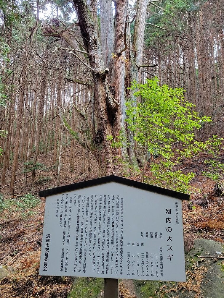 更に下ると「河内の大杉」があります。すごい大木、すごい迫力です。森の中に忽然と現れます。