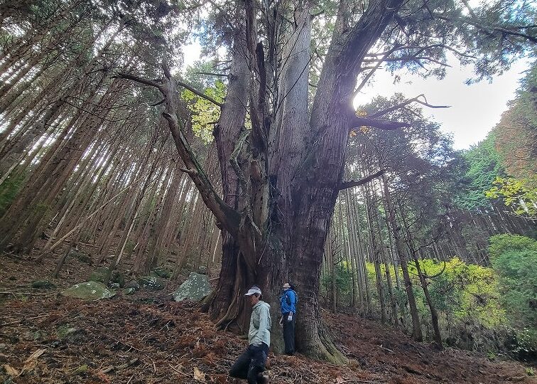 更に下ると「河内の大杉」があります。すごい大木、すごい迫力です。森の中に忽然と現れます。