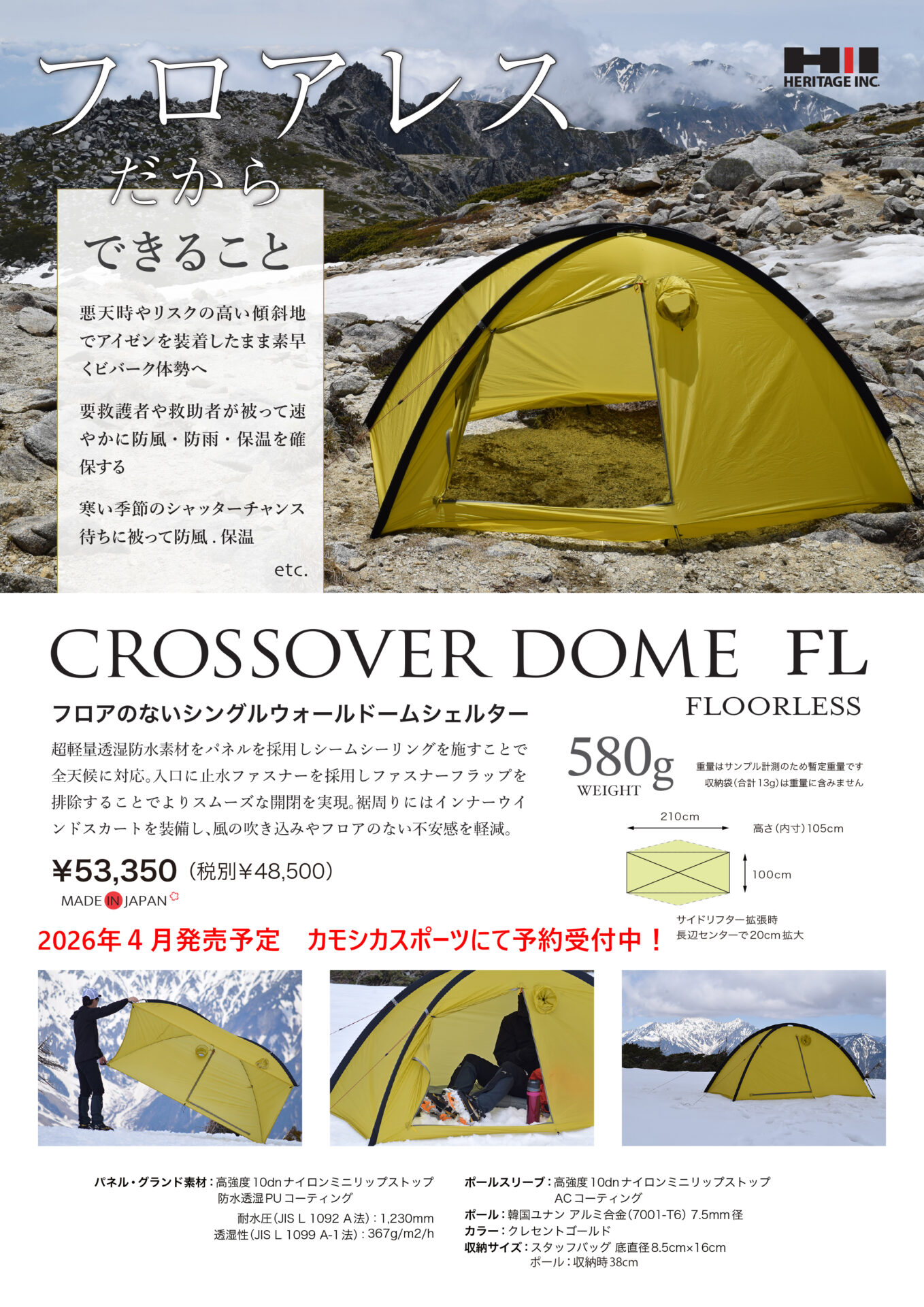 ヘリテイジより発売される「CROSSOVER DOME FL(クロスオーバー ドーム FL)」のカモシカスポーツでの予約受付についてお知らせします。