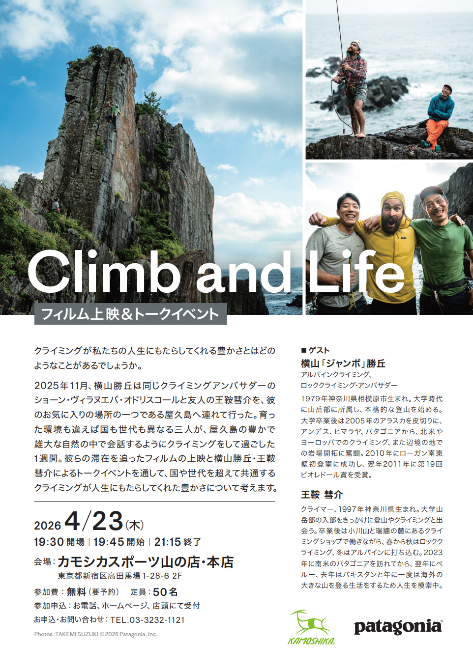 彼らの滞在を追ったフィルムの上映と横山勝丘・王鞍彗介によるトークイベントを通して、国や世代を超えて共通するクライミングが人生にもたらしてくれた豊かさについて考えます。